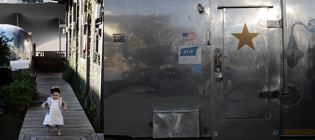 up in the sky amongst Cape Town's office blocks, is a lager of Airstream caravans. with a backdrop of blue skies and grid windows, these shiny metal hotel rooms look even more like a fantasy place to stay. Limi loved running around the circular deck. for her the idea of a playground in the sky is perfectly normal.